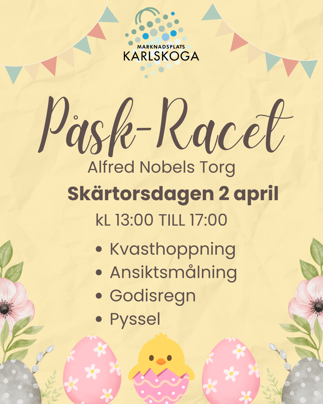 Välkomna till Påsk-Racet på Skärtorsdagen 2 april på Alfred Nobels Torg!